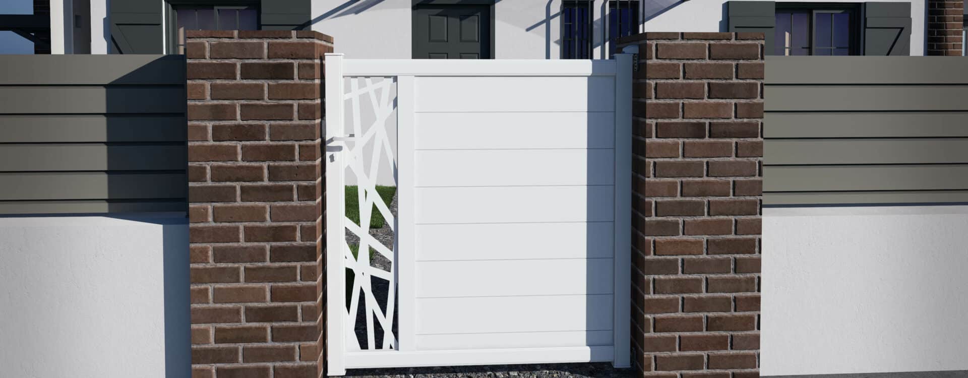 Le portillon Lys est le modèle qui se démarque ! Son mélange de lames 163×15 mm et sa tôle lui confèrent une esthétique originale tout en protégeant votre intimité.